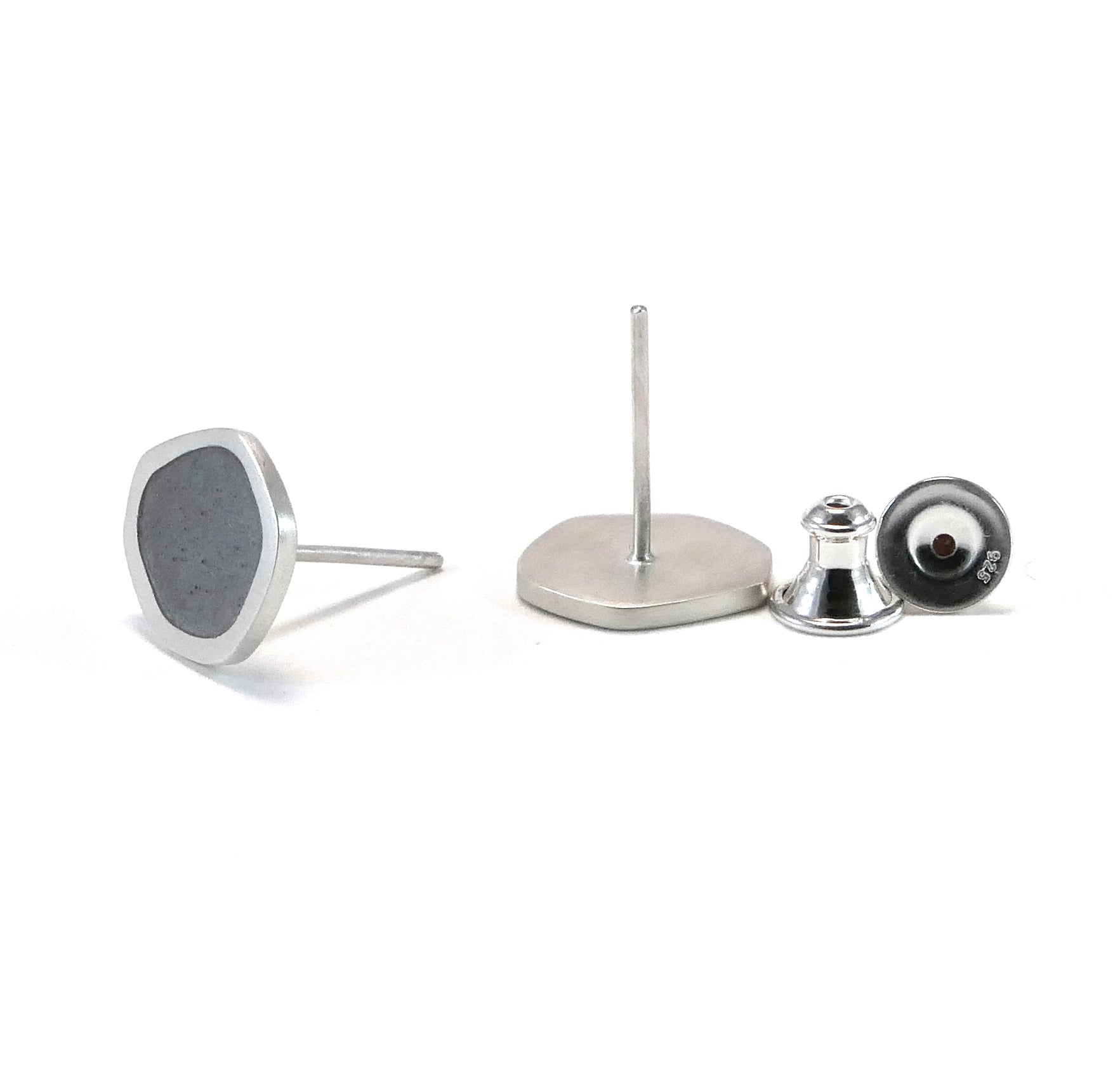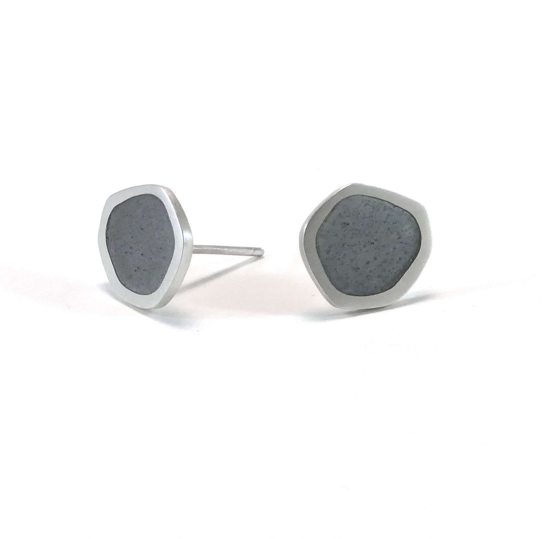 Flat boulder stud earrings, silver and violet grey enamel