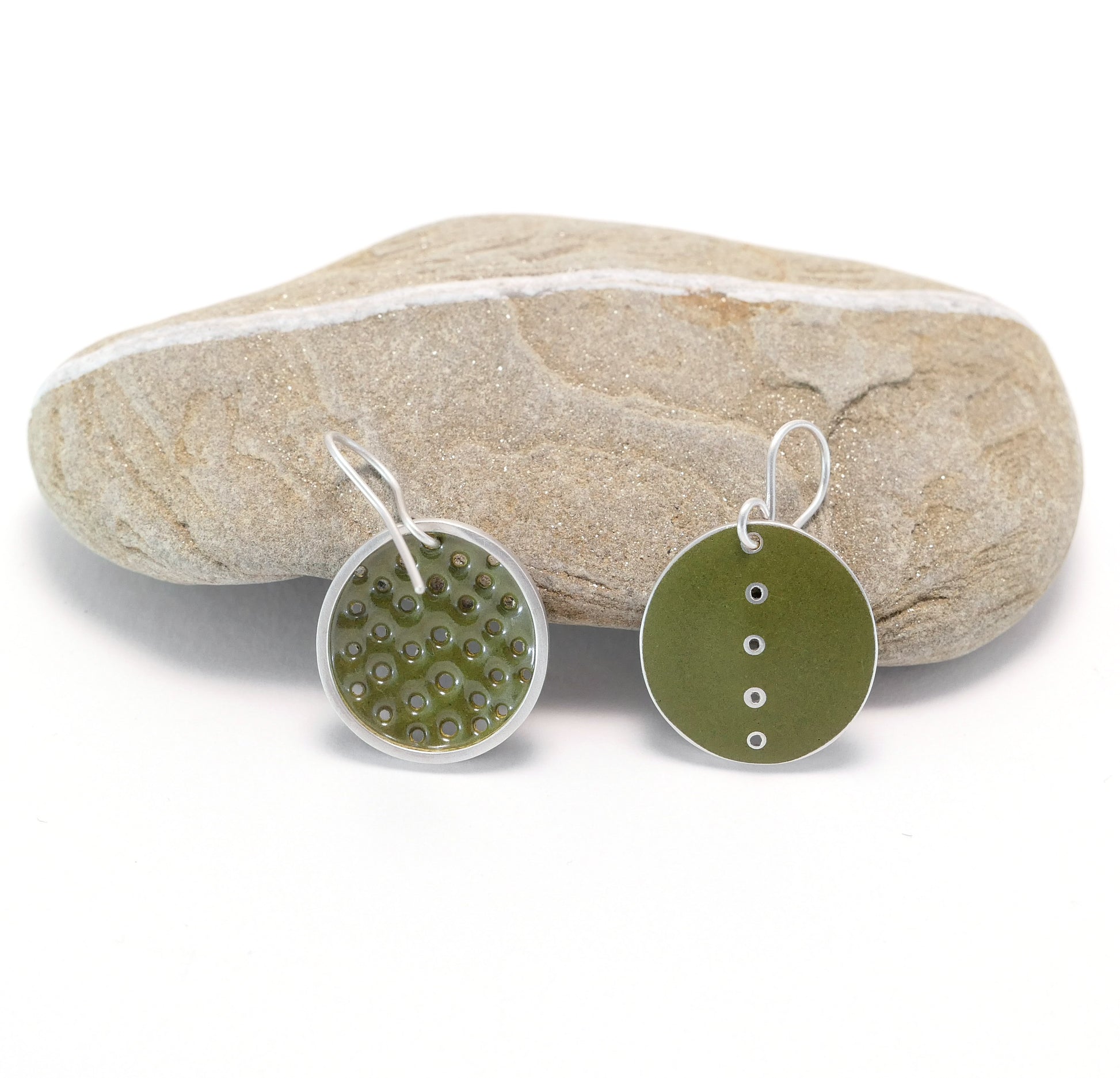 These hand made earrings are made from sterling silver and vitreous enamel that has been fired onto the silver in a hot kiln